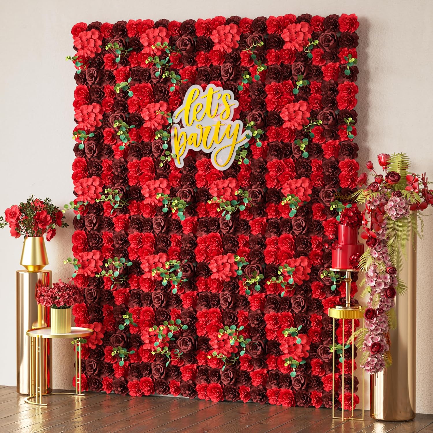 12PCS 15x15 Inch 3D Silk Rose Floral Wall, Artificial Flower Panels for Wedding, Party, Bridal Shower, Baby Shower, Home and Photo Backdrop Decoration